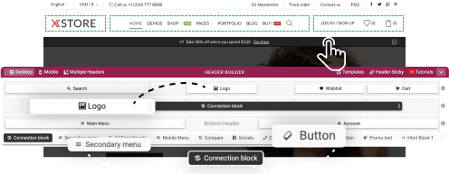Build powerful headers in minutes with drag and drop header builder. Customize it and give it your own touch.